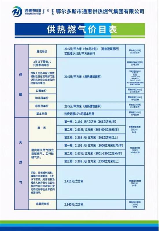 供熱燃?xì)鈨r(jià)目表公示